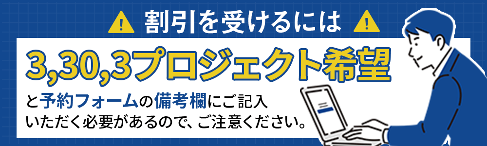 ※予約時に「3,30,3プロジェクト希望」の旨を伝えてください
