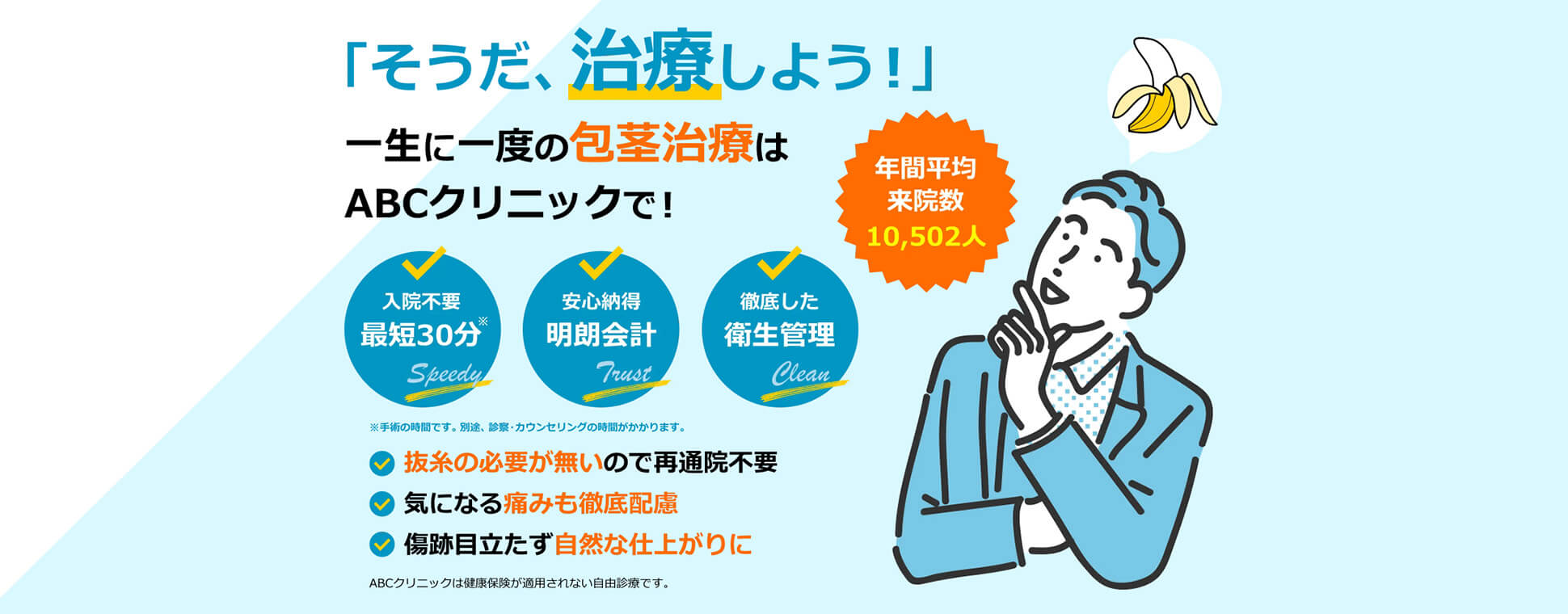 「日本の男性から包茎の悩みをなくしたい」の信念のもと、55,000円の治療を33,000円で受けられます。