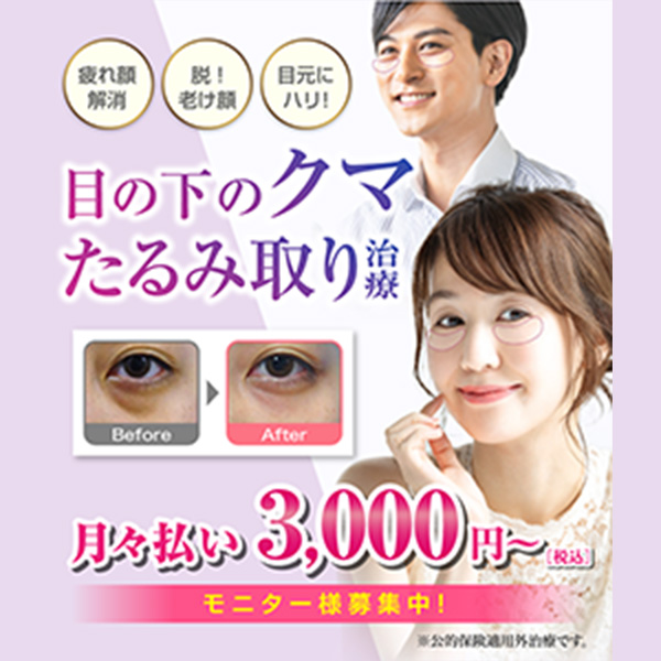 一人ひとりのクマの状態を丁寧に診察して、オーダーメイド治療を提案。自身の脂肪を目の下のくぼみに注入する切らない施術の他に、結膜側から切開して脂肪を取り除く施術も可能です。