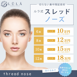 鼻整形はヒアルロン酸、スレッドノーズなどの手軽なものから、難易度の高い軟骨移植まで12種類の施術をご用意。