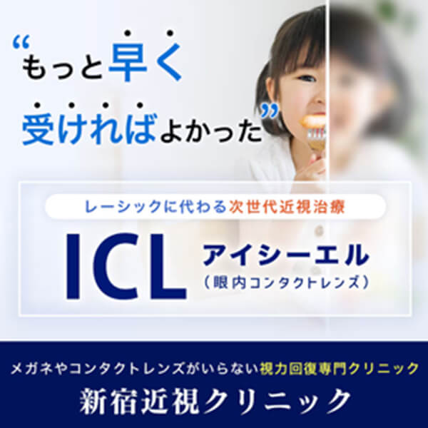 ICL手術実績25,000件以上のクリニック。近視治療10万件を超えるので不測の事態にも対応できて心強いでしょう。