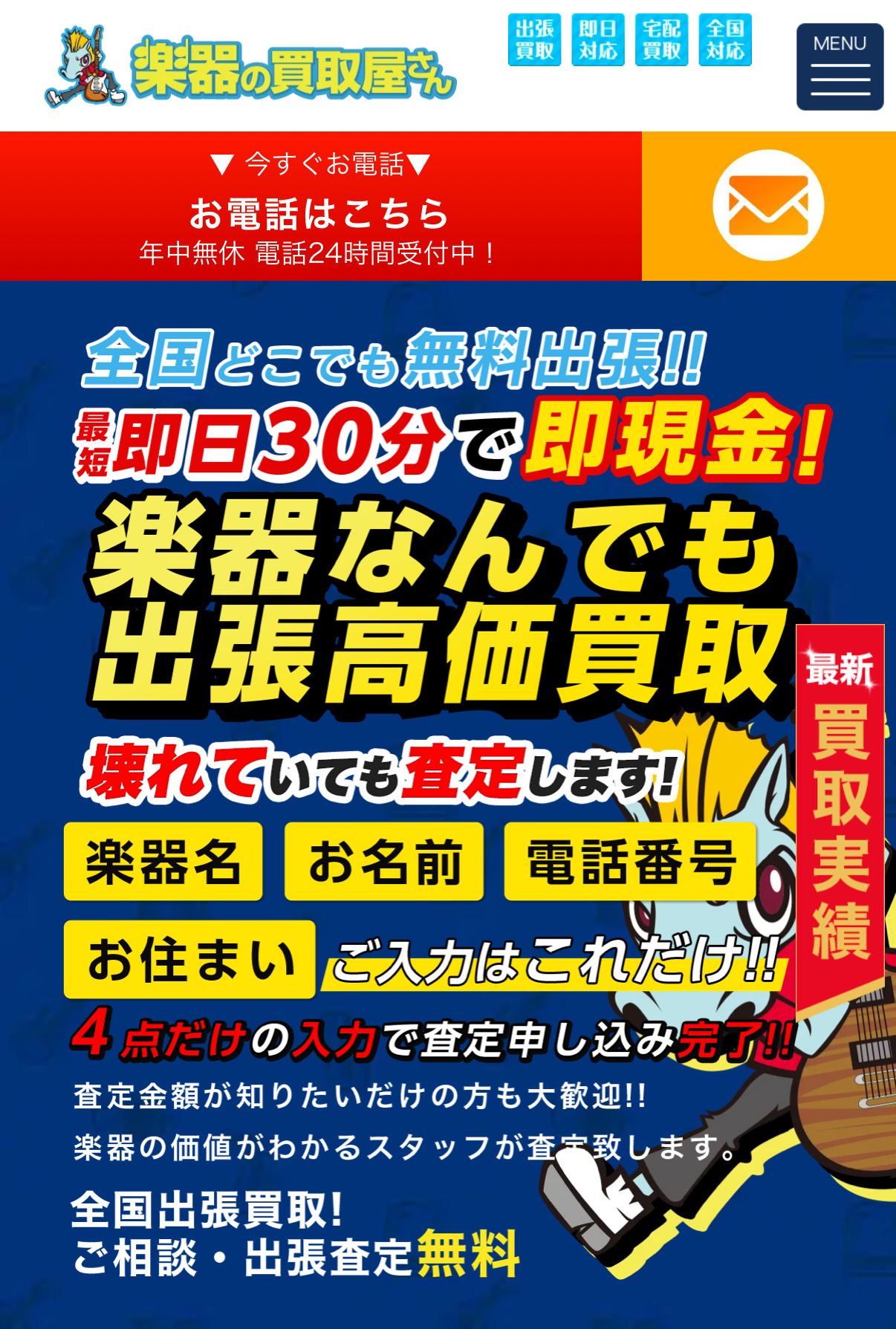 楽器の買取屋さんは全国どこでも無料出張可能で、最短即日30分で即現金化してくれる楽器専門の出張買取サービスです!