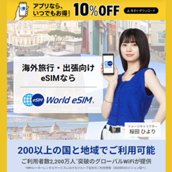 World eSIMはレンタルWi-Fi大手の株式会社ビジョンが提供するeSIMサービスです。