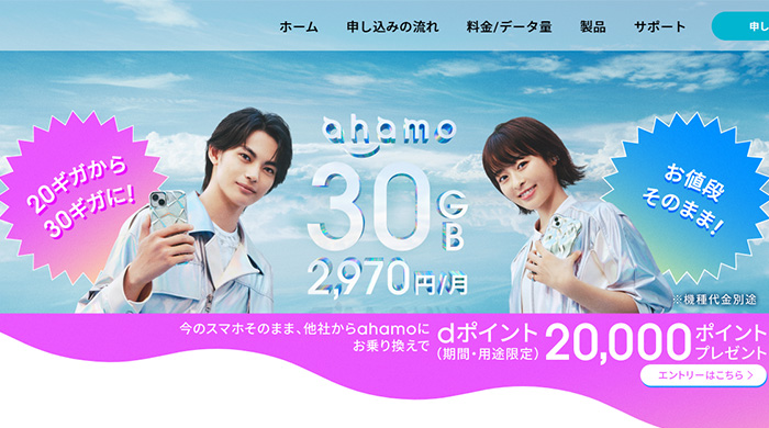 エントリーページからエントリーの上、エントリー翌月末までに、ahamoサイトで携帯電話番号ポータビリティ(MNP)を利用し、端末購入を伴うことなく(SIMのみ契約)、ahamoを契約し、開通手続き(利用開始の手続き)を完了すると、進呈条件を満たした月の翌々月以降5か月間、毎月10日までにdポイント(期間・用途限定)4,000ポイントを進呈(計20,000ポイント)いたします。