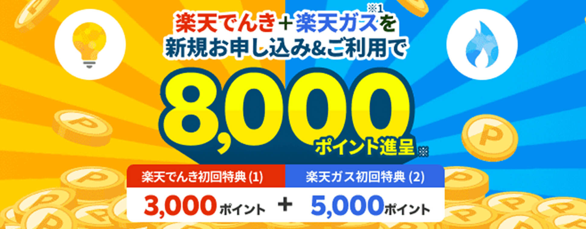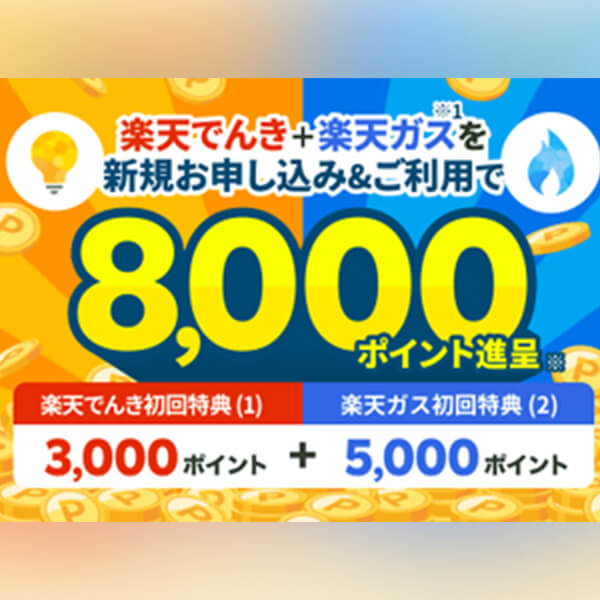 電気とガスセットで新規申込&利用開始すれば楽天ポイントを6,000pもらえるキャンペーン中。(※1)