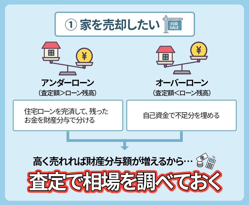 高く売れればローンを完済できるだけでなく、財産分与で受取れる金額も増えるため、家の市場価値の把握が重要です。