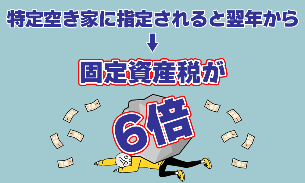 特定空き家に指定されると、住宅用地の特例である固定資産税を軽減制度を受けられなくなり、固定資産税が最大で6倍になってしまいます。