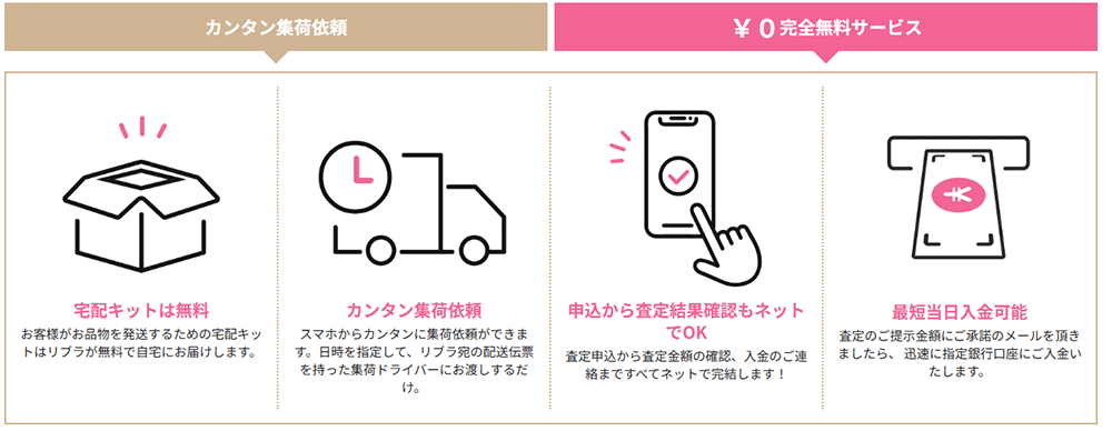 | 店頭買取・宅配買取・出張買取 | 査定・買取に係る費用無料 |