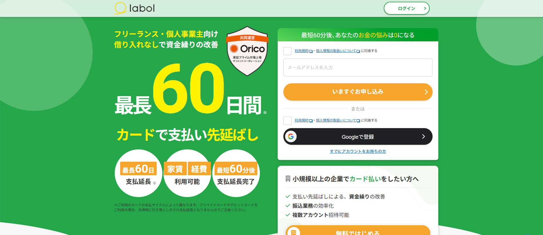 間に請求書カード払いサービスを挟むことで最大60日間支払いを延長できるため、キャッシュフローの改善に大変役立ちます。