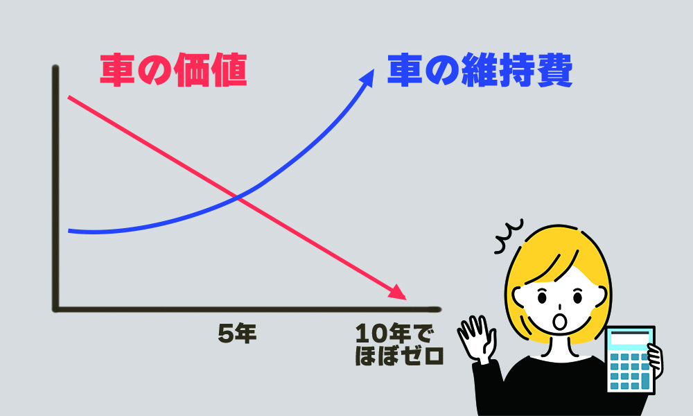 実際、車の価値は5年で半分、10年でほぼゼロに。それに反比例して、10年を超えた車は故障も増え維持費は右肩上がりに…。