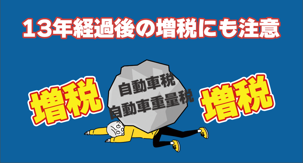 新車から13年経過すると、自動車税と自動車重量税が大幅増税される点も留意しておきたいです。