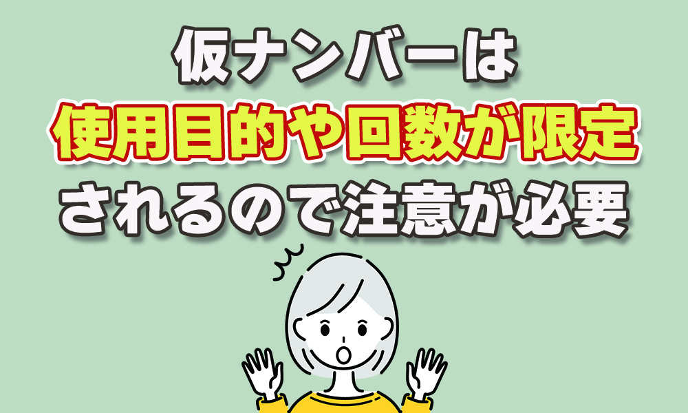 車検や整備、修理、盗まれたナンバーの再交付など正当な理由でないと許可されません。また、申請時に記入した目的以外で走行することも禁止されています。