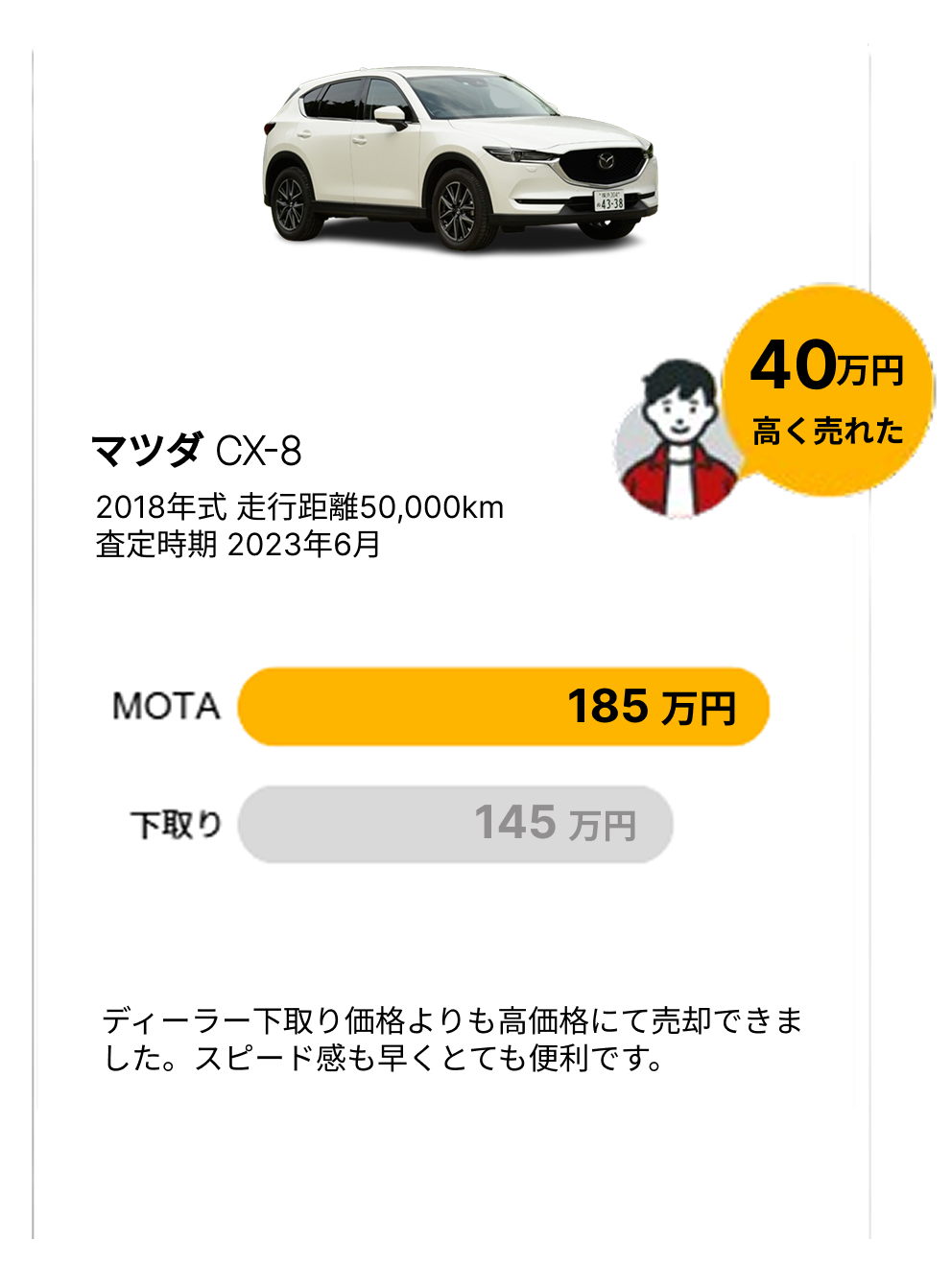 冒頭で紹介した人たち以外にも、MOTA車買取を利用して良かったと満足の声があがっています。