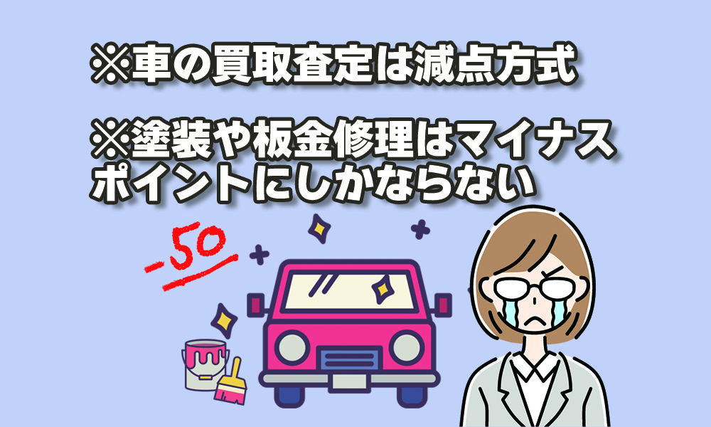 20万円かけて全塗装した車が、売却の際に30万円近くのマイナス査定をされる…のが査定の世界です。