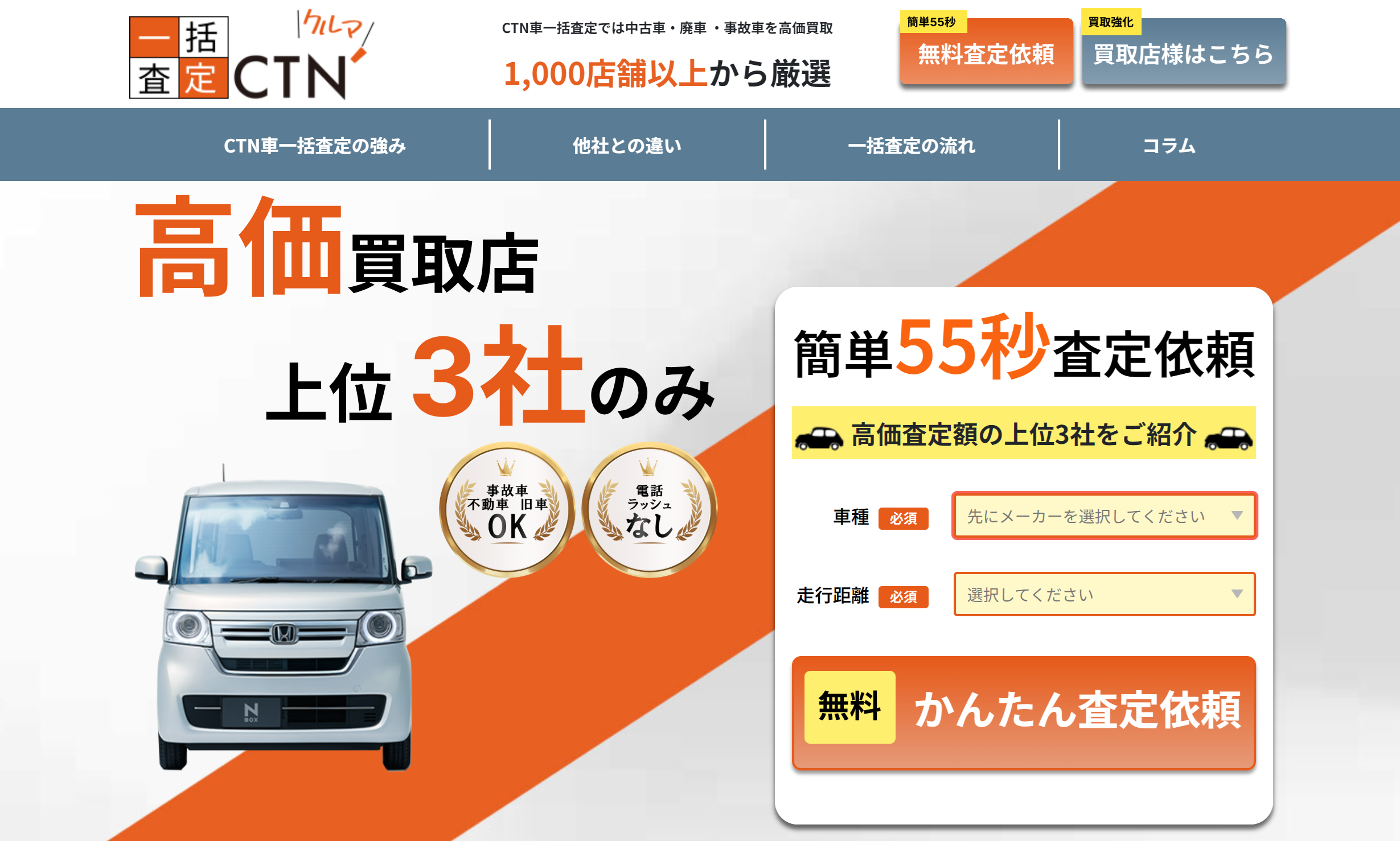 | 最大比較社数 | 電話対応 | 多走行車(10万キロ以上) |