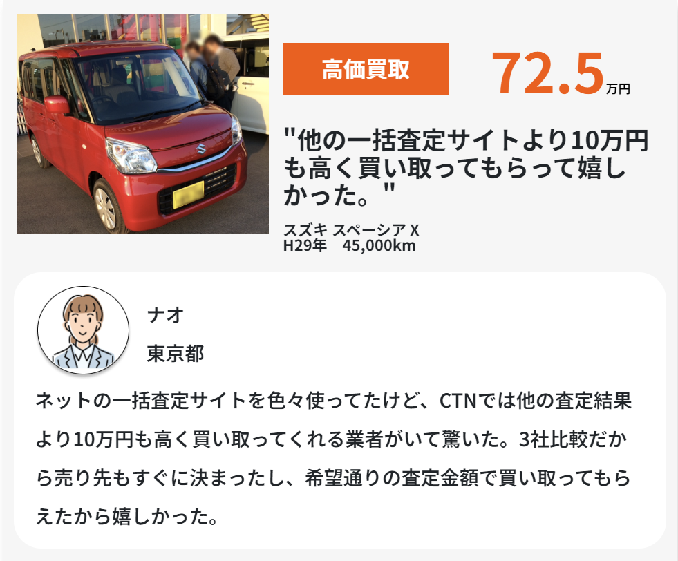 | CTN車一括査定を選んだ人の声(※公式サイトから引用) |