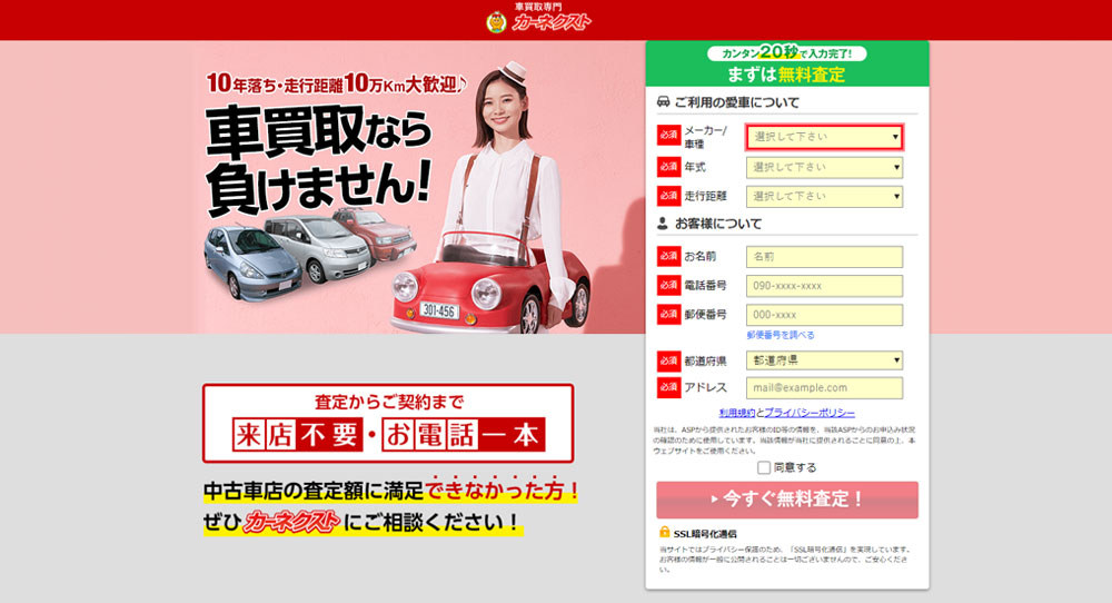 一部離島を除く日本全国どこでも無料で車を引取りに来てくれるだけでなく、面倒な書類の記入から運輸支局への提出など売却に関する手続きも全て無料で代行!