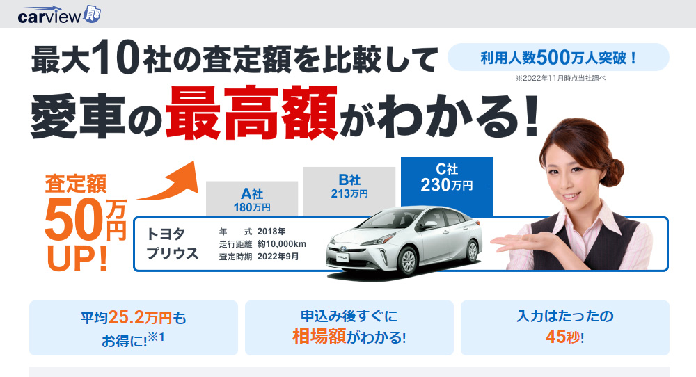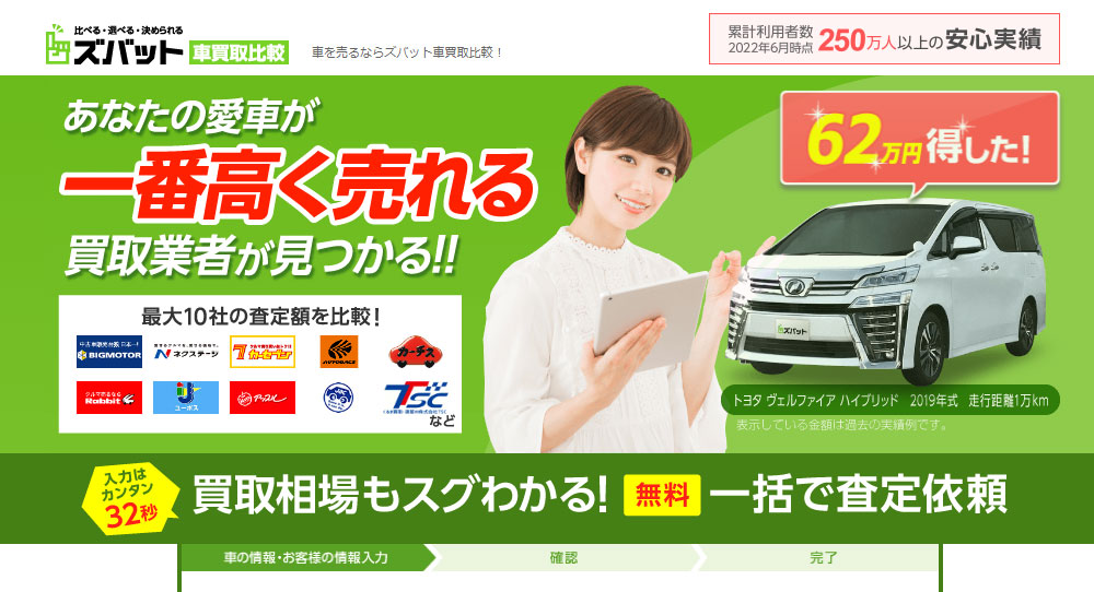 ズバット車買取比較は実績の多い安心して任せられる一括査定サービスです。