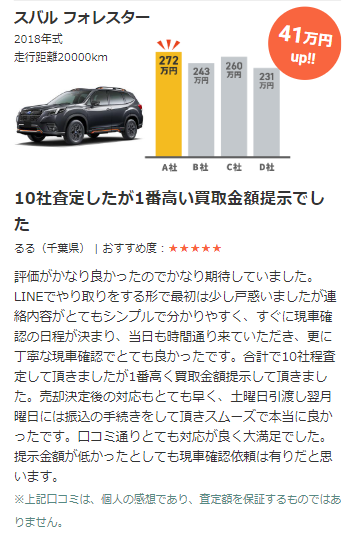 比較できる会社数最大20社も断然他より多く、買取店は上位3社に選ばれようと競い合うため、査定金額が高くなります。