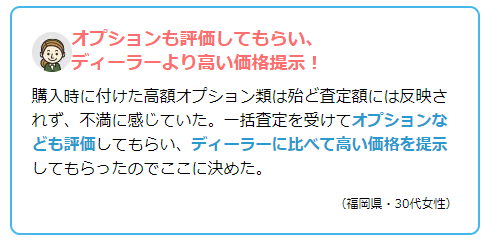 - ※だだし1社でしか査定しないと、その査定額が正しいのか判断しづらいデメリットがあります。