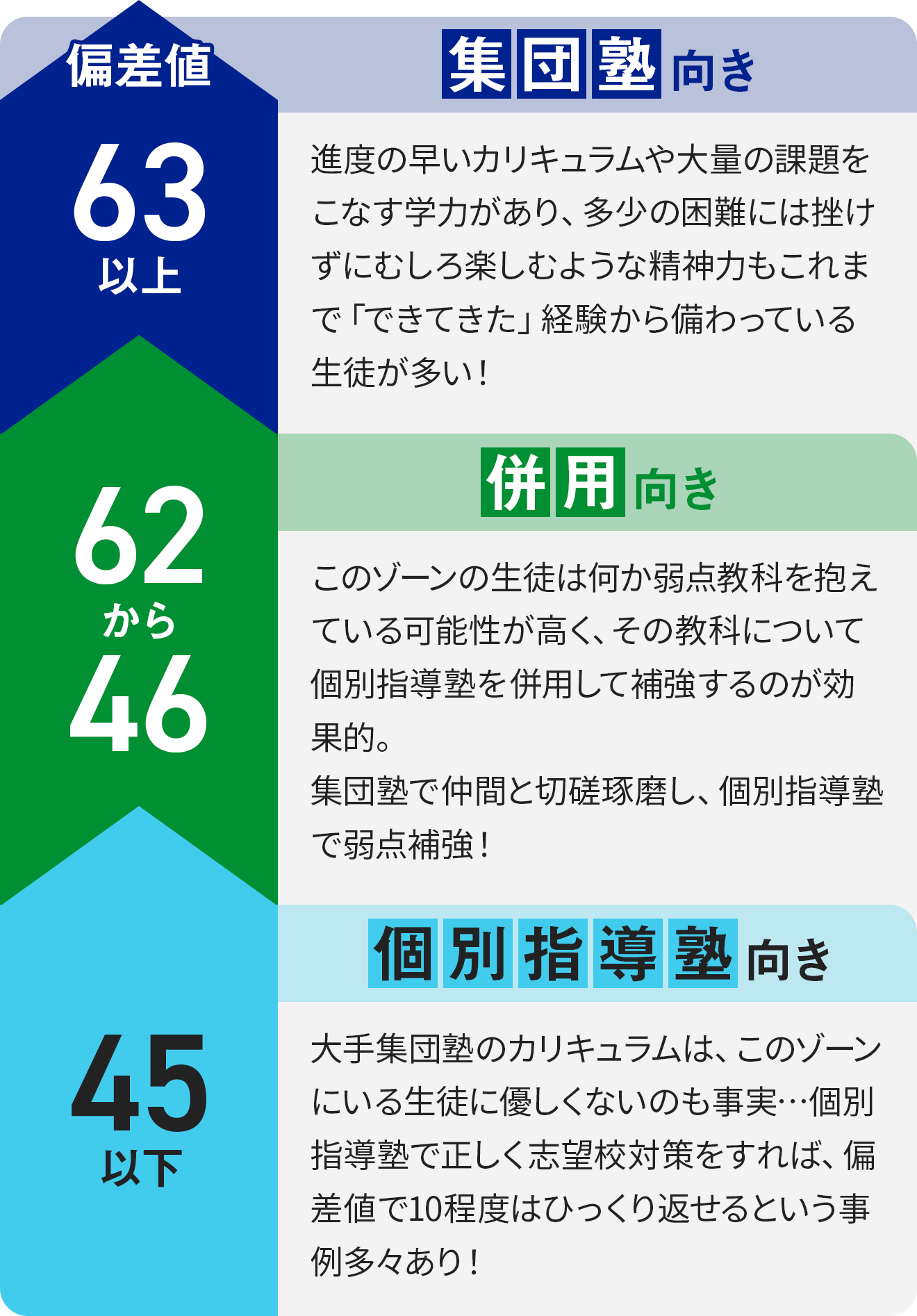 生徒ごとの個性もあるので、100%これが当てはまるとは言いませんが、概ねこのように考えて問題ありません。