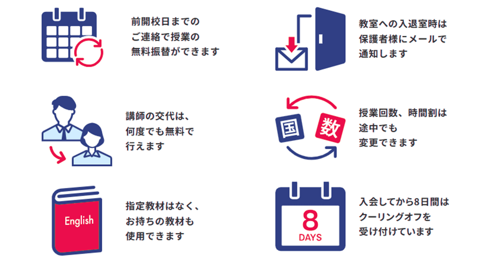 ・無料体験授業 ・学習相談 ・オーダーメイド学習プラン作成 |