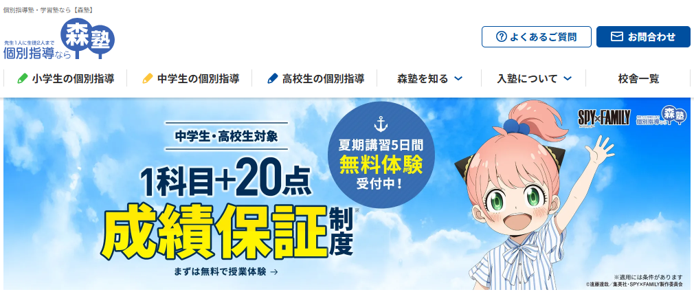 9/1~※無料学習面談完了にて【デジタルギフト500円分プレゼント】 お子さまの性格に合わせた指導で学ぶ楽しさがわかる! 一人ひとりに合ったオーダーメイドカリキュラム 様々なニーズに対応可能で心強い! ※本キャンペーンは予告なく終了する可能性がございます。本キャンペーンについては、お問い合わせ日を含めて、問い合わせ日から25日以内の無料学習相談の実施が必須になります。お問い合わせから26日以降に無料学習相談を実施された場合は、本キャンペーンのギフト受け取り対象外となります。 |