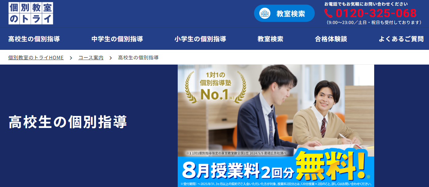 マンツーマン授業がいい!質の高い講師の授業を受けたい!そんな方はぜひ個別教室のトライの無料体験授業にお申し込みください!