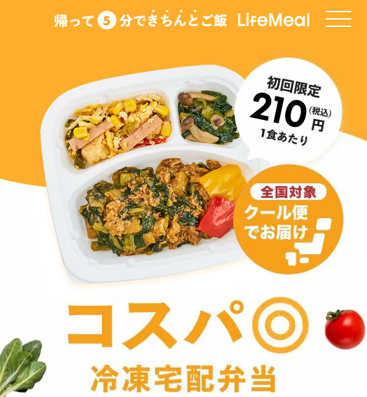 | 210円/食(税込)~ 冷凍庫無料レンタルも! お特便10回初回キャンペーン価格 いつでもキャンセル・解約OK |