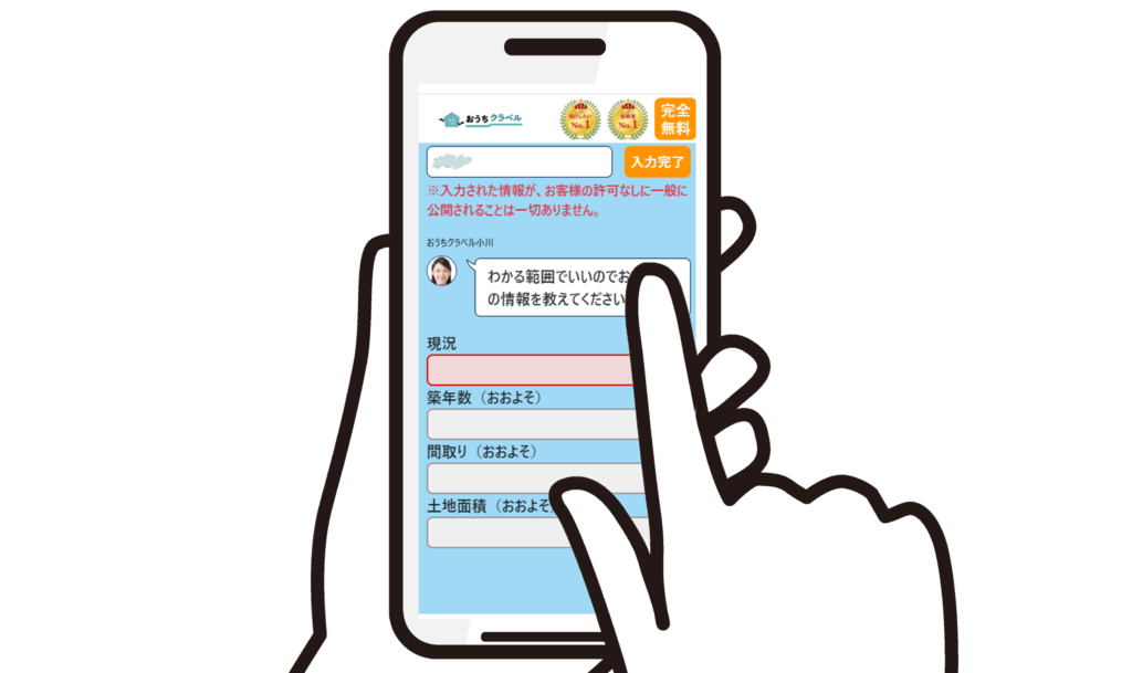 使い方は簡単。画面の質問に沿って入力するだけ。正確な情報がわからなくてもおおよそで大丈夫です。