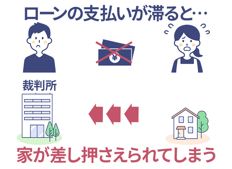 失業して支払い能力がなくなったり、相手の誠意が失われて返済が滞ると、家が差し押さえられ競売にかけられてしまいます。