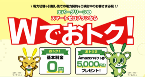 | 再生可能エネルギーの使用で 地球に優しい新電力 | クレジットカード | 【8月31日まで】期間中に新規契約された方に最大10,000円割引キャンペーン中! |