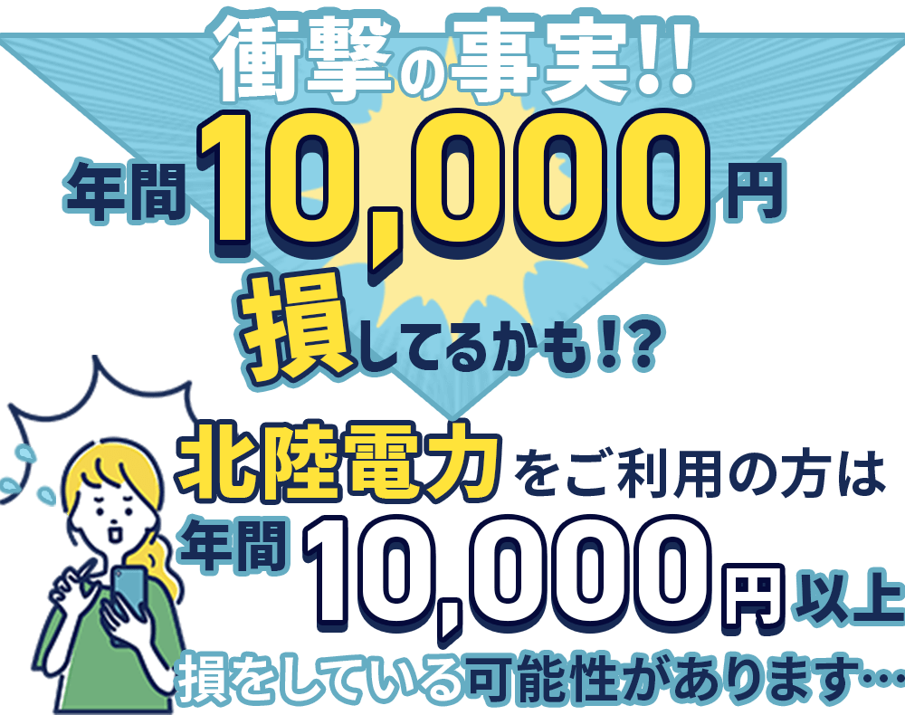 | 大手電力会社より約3%安い | 北陸電力より3%安い | 0円 解約時の事務手数料3,300円必要 |