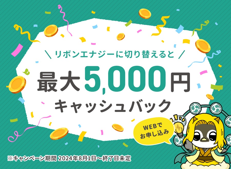 | 再生可能エネルギーの使用で 地球に優しい新電力 | クレジットカード | 【8月31日まで】期間中に新規契約された方に最大10,000円割引キャンペーン中! |