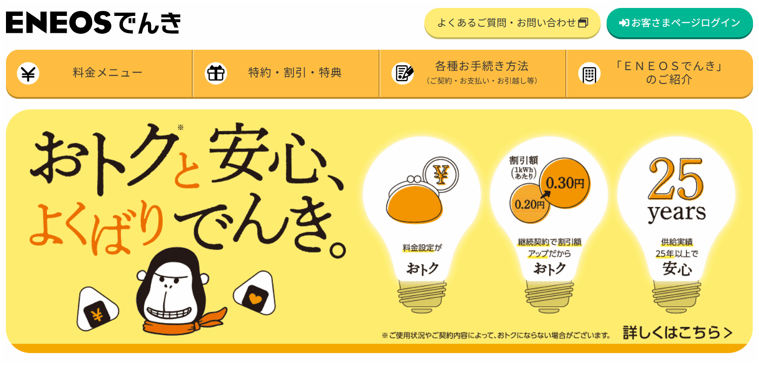 | 電気販売25年以上!全国に発電所を保有し220万kWの発電容量 | 口座振替、クレジットカード | 新規申込で電気料金から最大6,000円相当を割引(2025年4月18日まで) 支払い方法に合わせて選べる割引特典 ・電気料金200円につきVポイントが貯まる ・提携クレジットカードでの支払いでポイント・マイルが貯まる ・ENEOSカードで電気料金を支払うと通常カード特典に加え1円/ℓガソリン代がお得に |