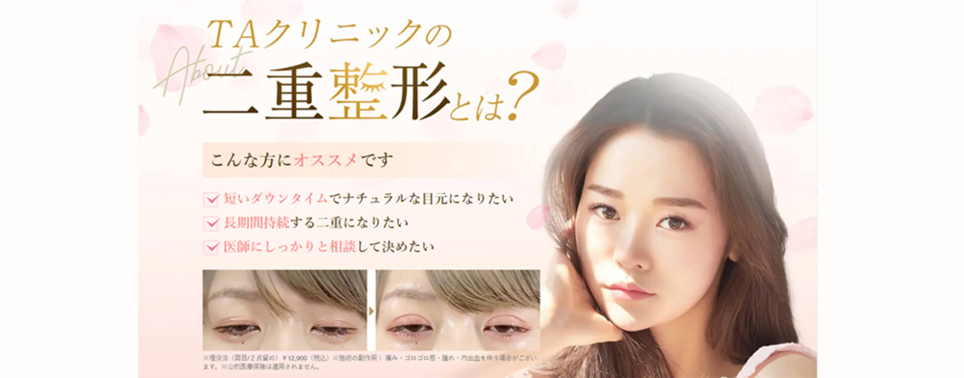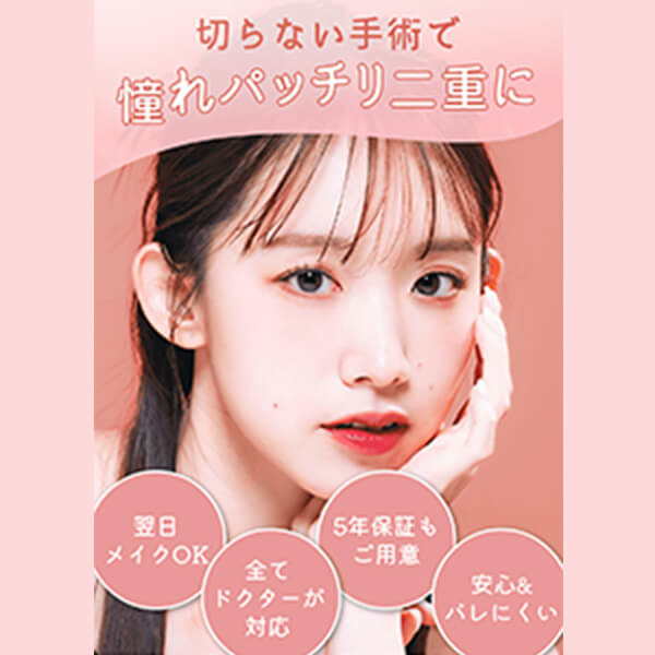 TCBの二重整形は、WEB限定クーポンを利用すれば両目で4,800円からととってもリーズナブル。しかも全メニュー再手術保証付き。糸が取れたりラインが薄くなった場合はもちろん、他のクリニックではほぼ実施していないデザインのやり直しも保証期間内なら2回まで無料でOK!