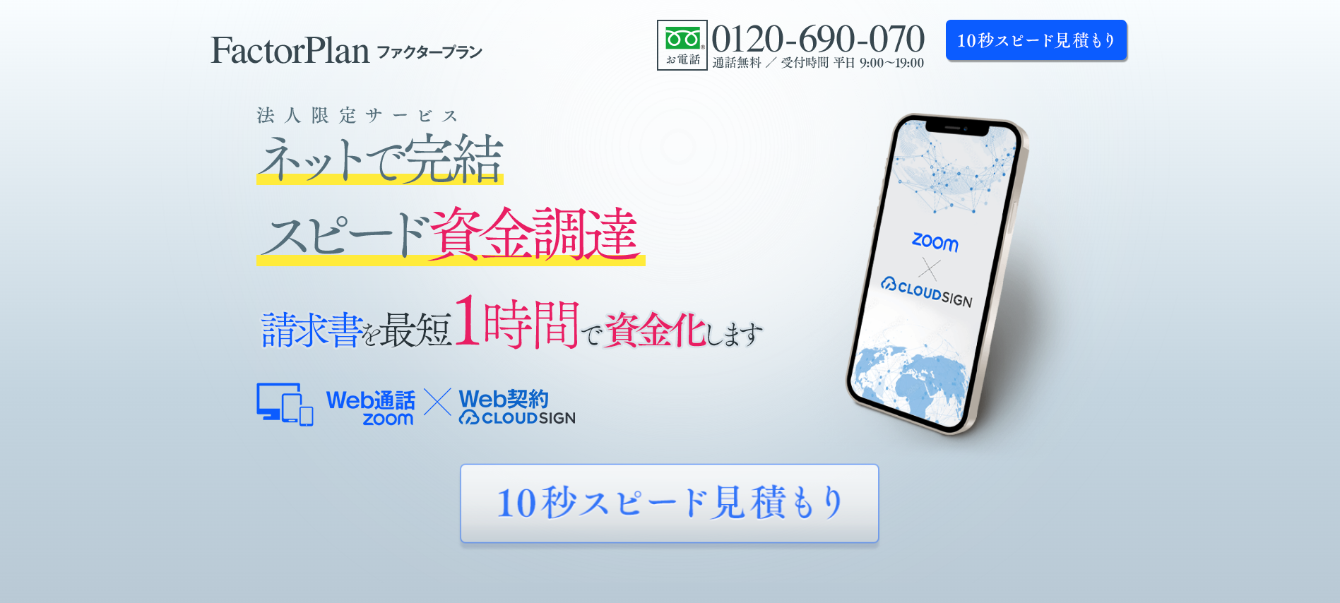 | 最高買い取り額約5,000万円 | 多数 会社謄本・印鑑証明書(法人・代表者個人)・代表者個人の住民票・代表者の身分証明書(顔写真の付いたもの)・決算書(直近2期分)・売掛先との契約書、請求書、発注書等・入出金の確認がとれる通帳(過去6ヶ月分) |