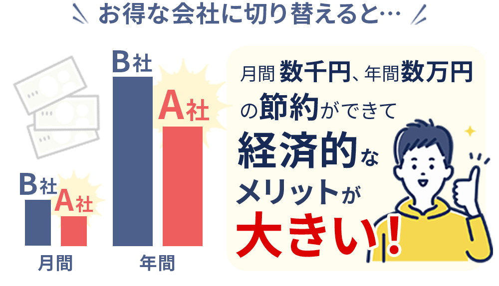 平均年間47,000円の節約が可能で、場合によっては年間50,000円以上も安くなるとは驚きですよね!