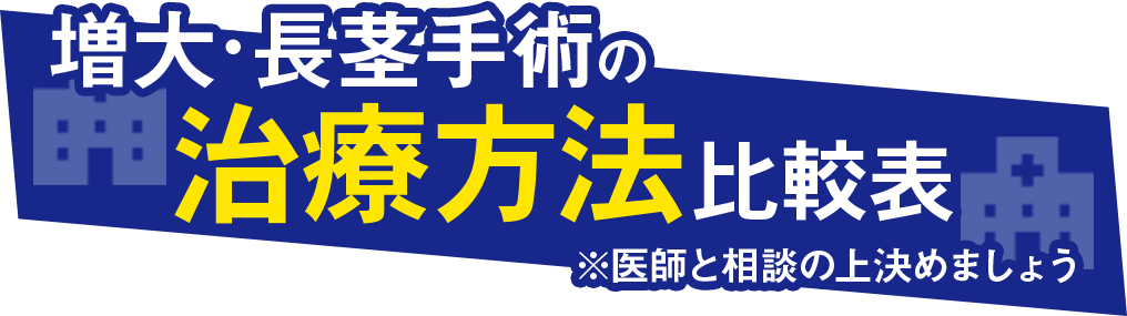 長茎術は医師の技量に大きく左右される治療法です。実績豊富な医師が在籍するクリニックを選ぶと失敗のリスクが大幅に軽減し、1日で手術が終わります。何度も通い治療費を払い続ける必要もありません。