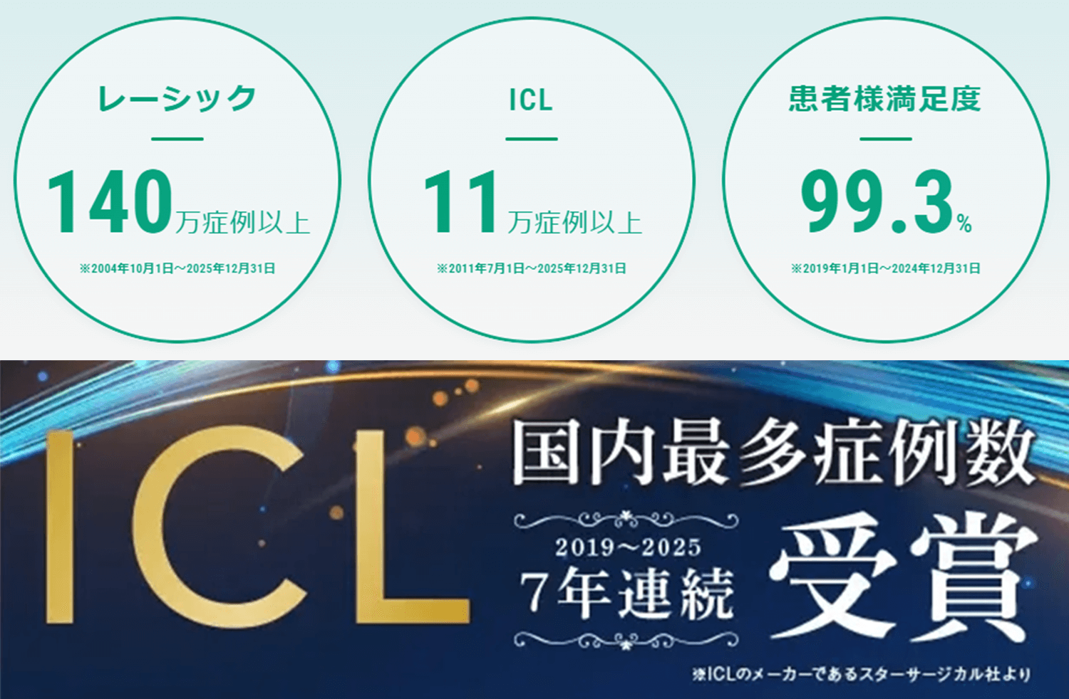 | 10万症例以上 | レーシック手術137万症例以上 白内障手術、老眼治療など |