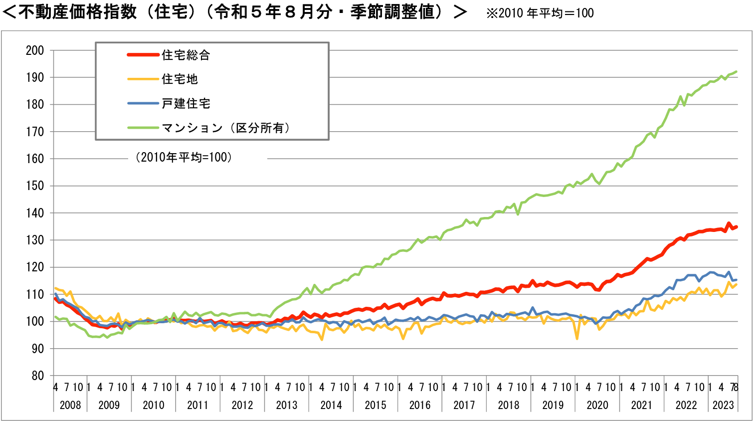 不動産価格指数(引用元:不動産価格指数|国土交通省国土交通省)