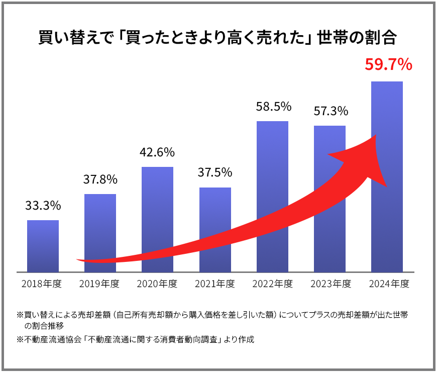 不動産流通経営協会の調査では、約6割の方が「買った時よりも高い値段で家が売却できた」と答えています。