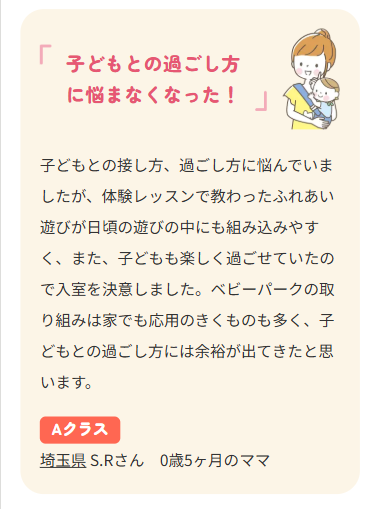 初めての育児でこどもとの関わり方をプロからしっかり学びたいと思っているママ・パパにベビーパークはとくにおすすめです!