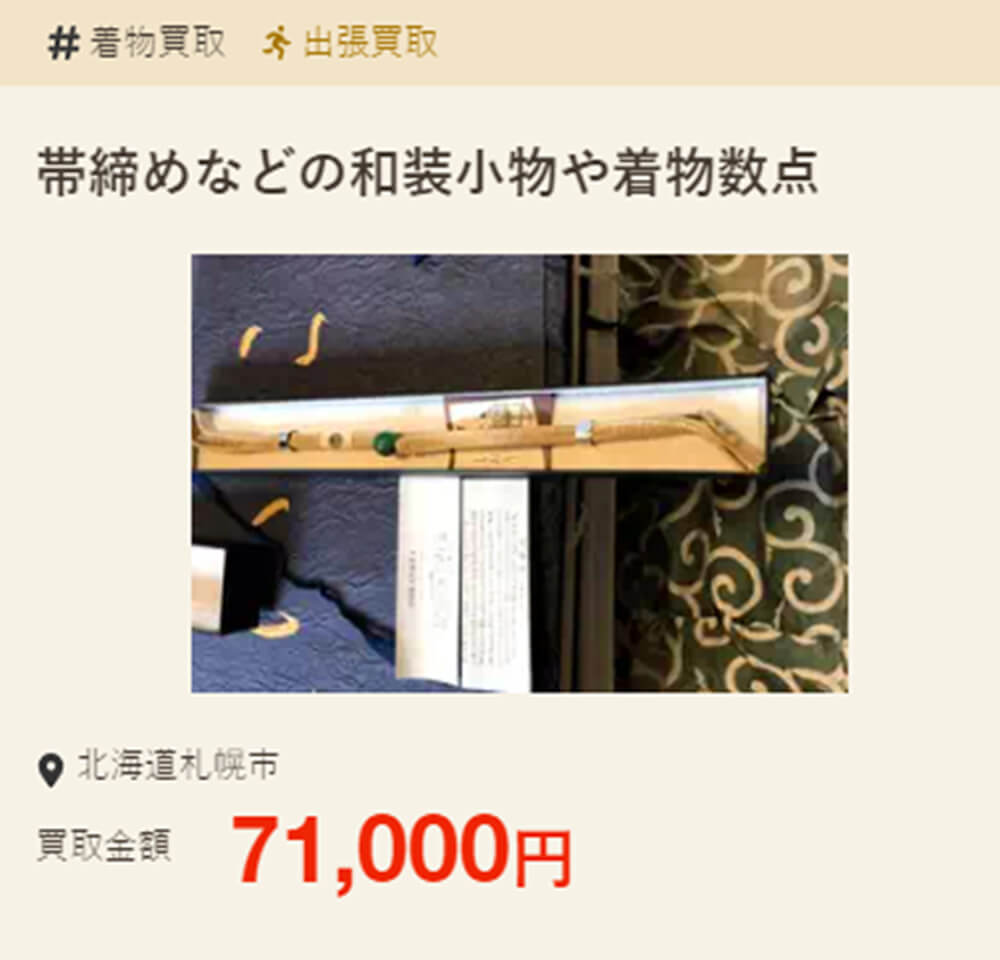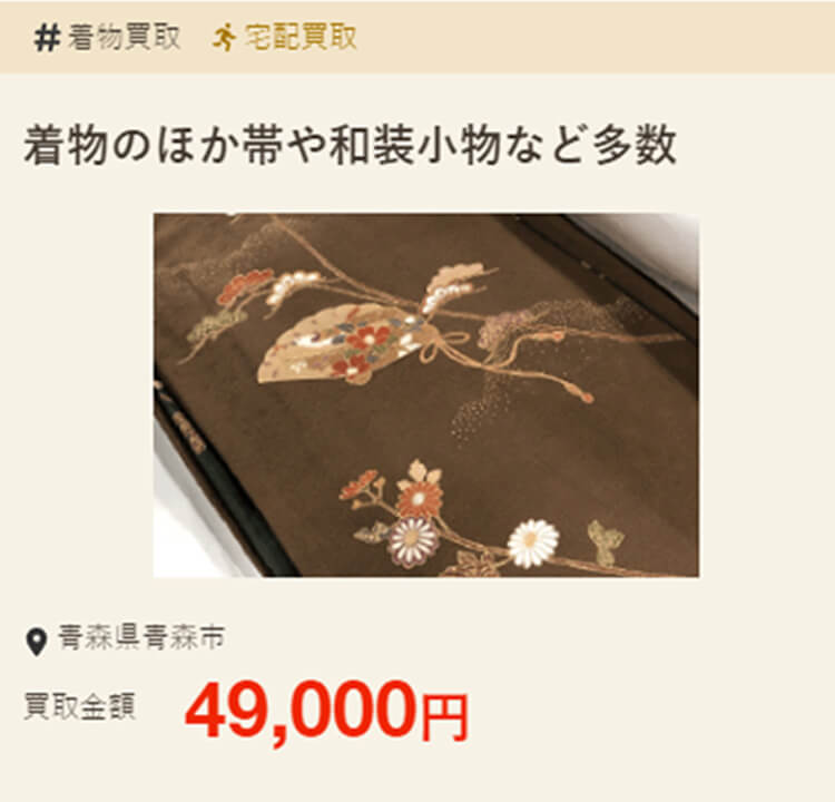 「着物市場」など自社で運営する再販ルートを持つため、幅広い買取が可能です。