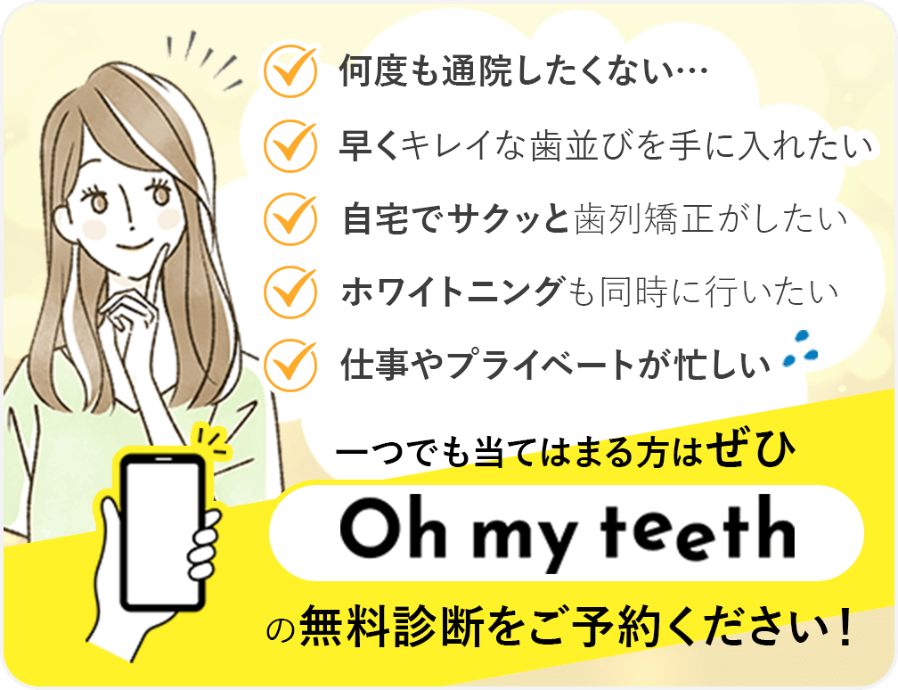 あとは自宅にマウスピース矯正が届き、さらに定期通院不要なので忙しい方にもOh my teethはぴったりです!