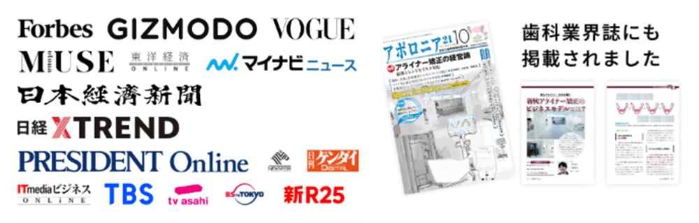 様々なメディアにも掲載されていて、注目のマウスピース矯正だということがわかりますね!
