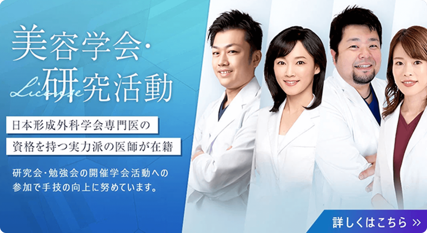 高い技術を持った経験豊富な医師が多数在籍。さらに、日本形成外科学会専門医の資格をもつ医師を中心とした研究会で、日々技術の向上にも取り組んでいるため、安心して施術を受けられます。