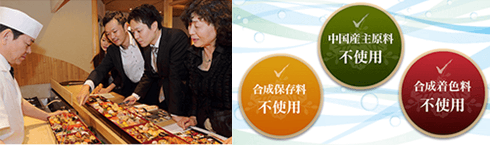 京都をはじめとする全国の有名料亭の料理人と共に創りだした匠本舗オリジナルおせちで中国産主原料、合成保存料、合成着色料不使用で安心・安全にもこだわって作られています!