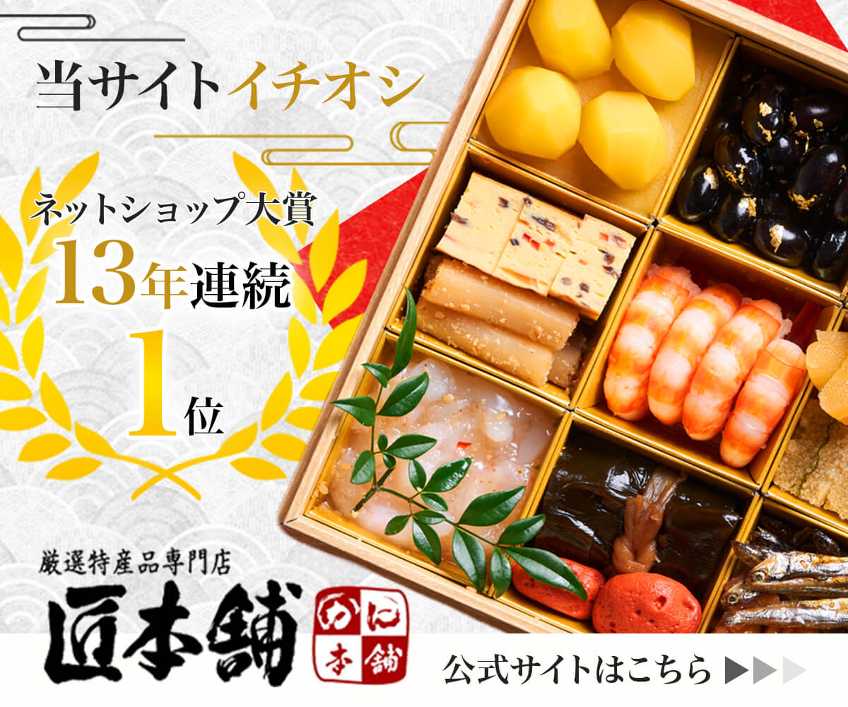 匠本舗はネットショップ大賞14年連続1位や、日本マーケティングリサーチ機構の調査でおせち通販人気NO.1に選ばれた高い実績を持つおせち通販サイトです!
