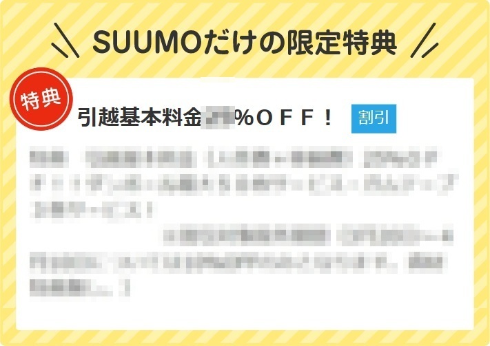 SUUMO引越し見積もりを利用した方だけが受けられる特典もあり、引越し料金の割引や、梱包資材のプレゼントなど内容は業者により様々です。